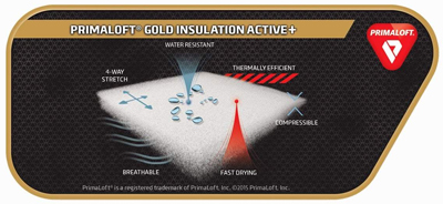 Para las zonas de mayor compresión —como los hombros, el cuello o la tapeta frontal— se integra aislamiento sintético Primaloft® Gold Active Vent de 60 g/m², que mejora la transpirabilidad y conserva el calor sin saturarse de humedad. La cremallera frontal YKK Vislon Natulon bidireccional, asegura un cierre duradero y cómodo. |